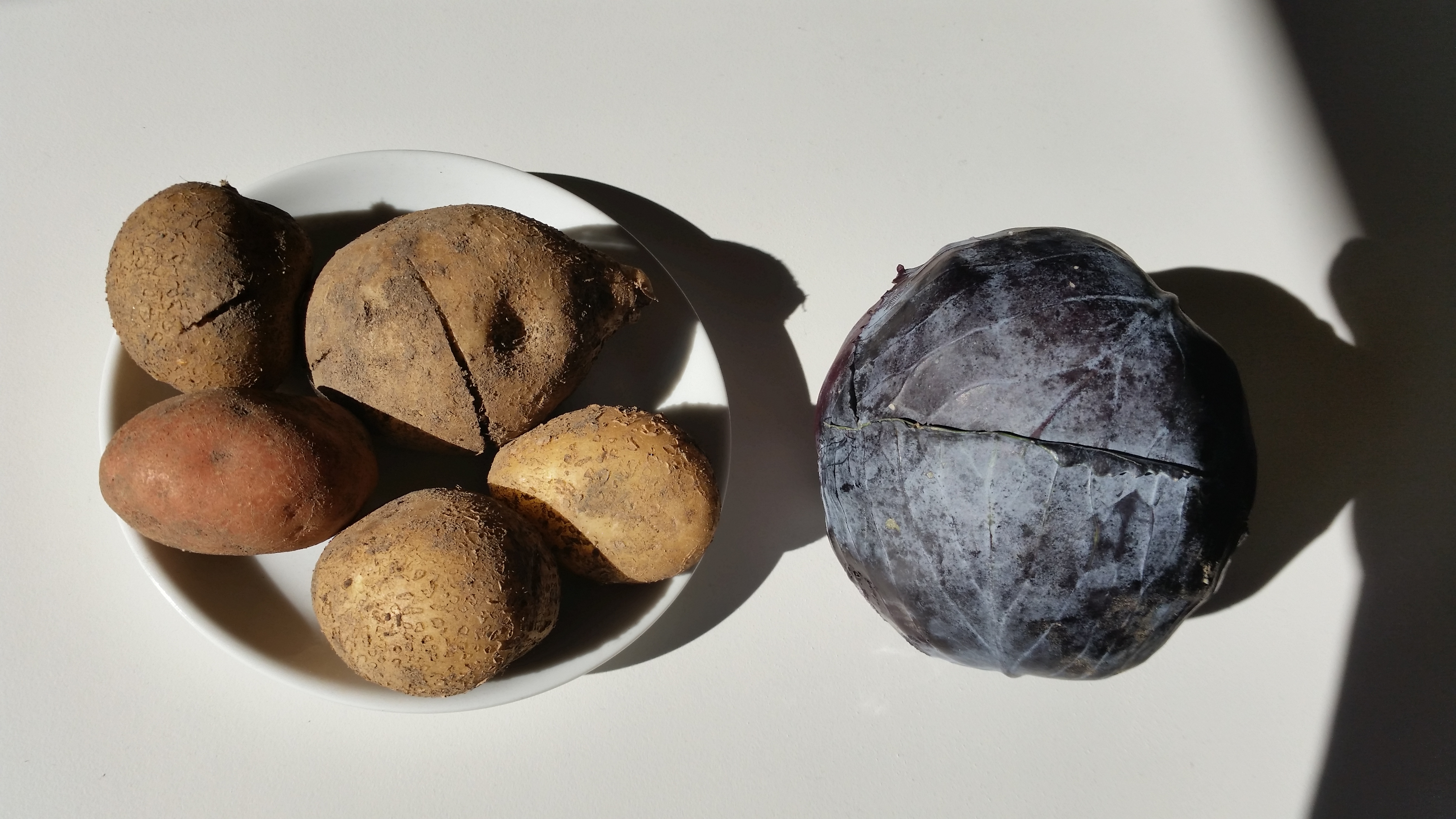 Es ist ein echter „Single“-Kopf, so klein… Er stammt – die Kartoffeln und 1 Zwiebel auch – direkt vom „Suppenstern“ auf der Landesgartenschau in Gmünd. Ich hatte das große Glück, dieses Köpfchen zu ergattern. Und weil es so ein besonderer Kohlkopf ist, darf er sich in die Wochenaufgabe einreihen! Was daraus wird und wie er schmeckt – davon zu einem späteren Zeitpunkt mehr.