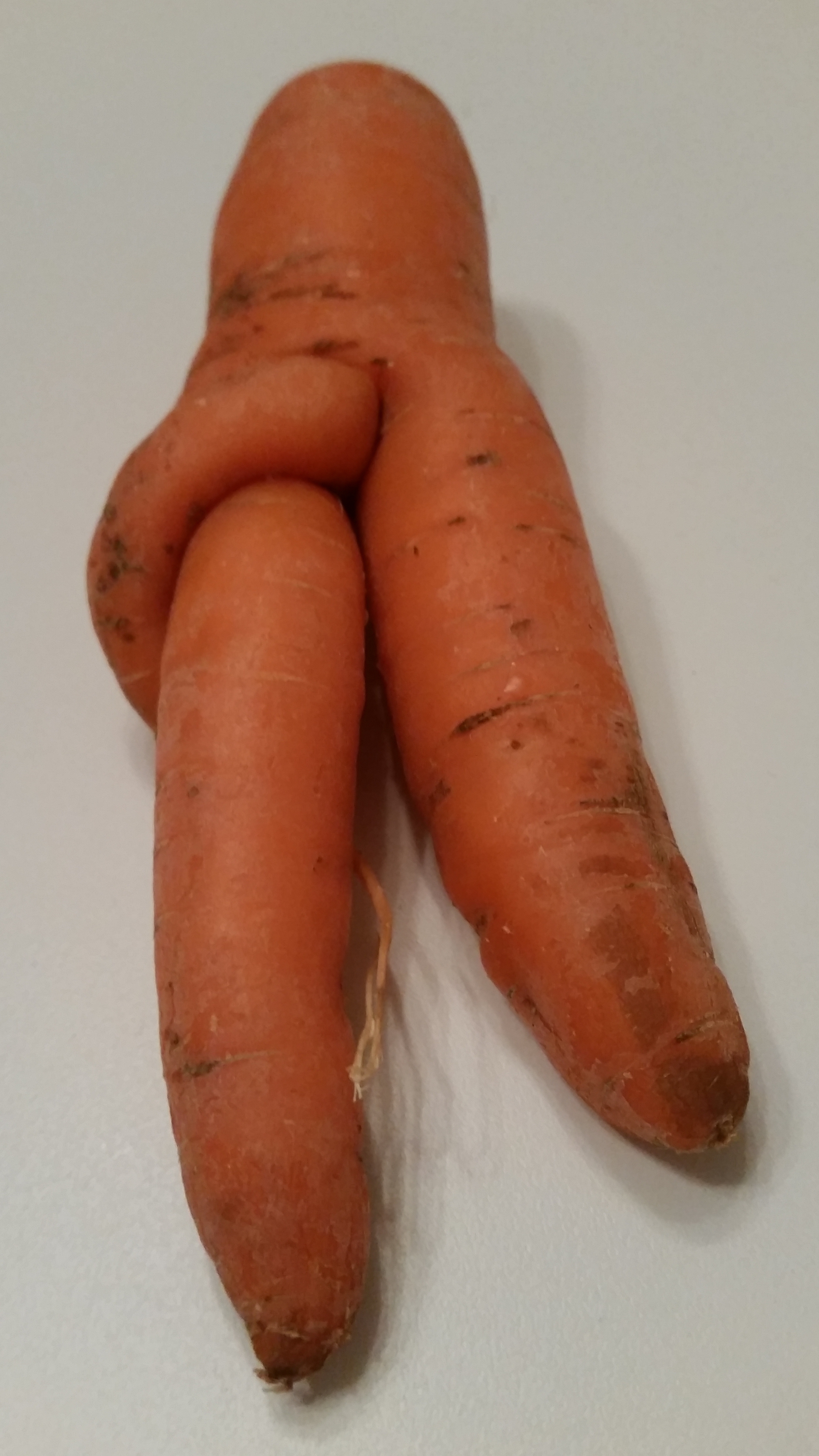 Bei meinem letzten Einkauf auf dem Markt kaufte ich auch Suppengrün. Zuhause war ich dann sehr amüsiert, als ich mir die Karotte genauer ansah. Werft selbst einen Blick darauf…