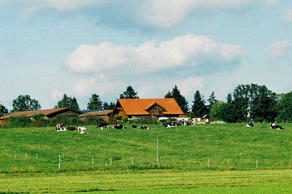 Boxenlaufstall mit Liegebuchten, im Sommer Weidehaltung
