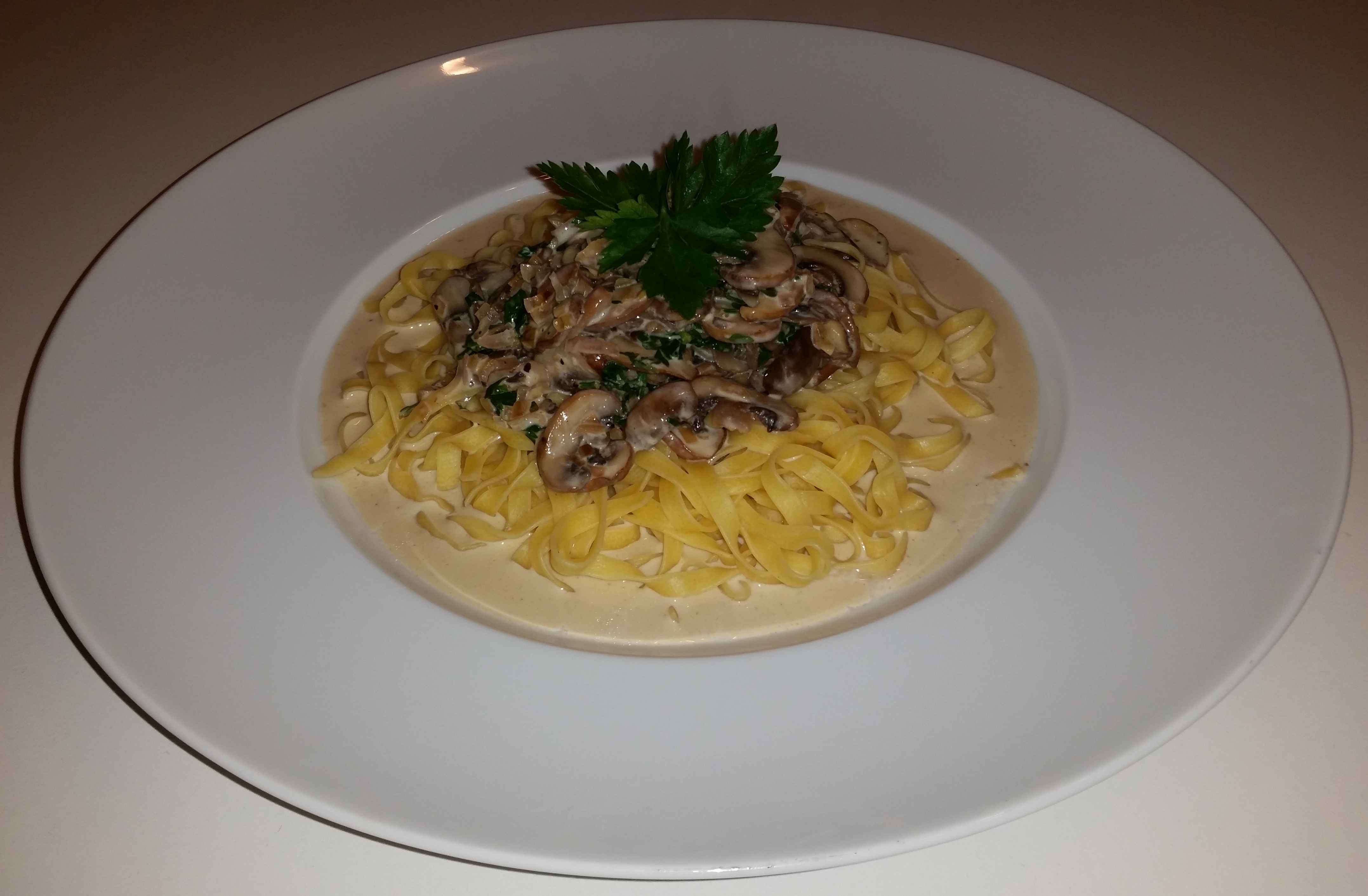 17:45 Tagliatelle vereinigen sich mit einer frischen Pilz-Sahne-Soße
