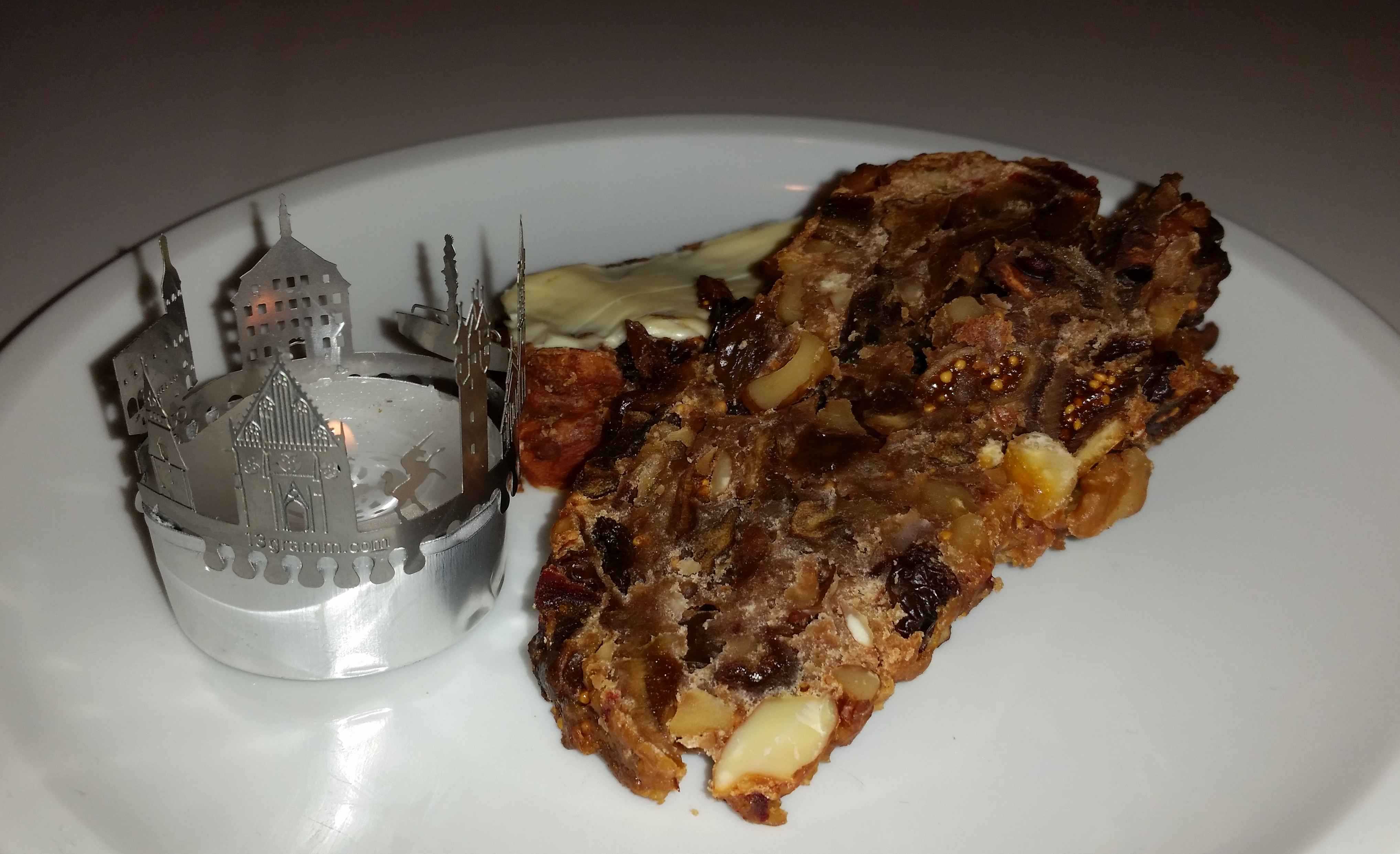 und nun ist die Dunkelheit hereingebrochen, das Zimmer ist warm, es duftet nach Kerzen und Weihnachten und mein Hutzelbrot wartet auf mich. Es ist jetzt so richtig durchgezogen und saftig – das war und bleibt das Glanzstück unserer Weihnachtsbäckerei!