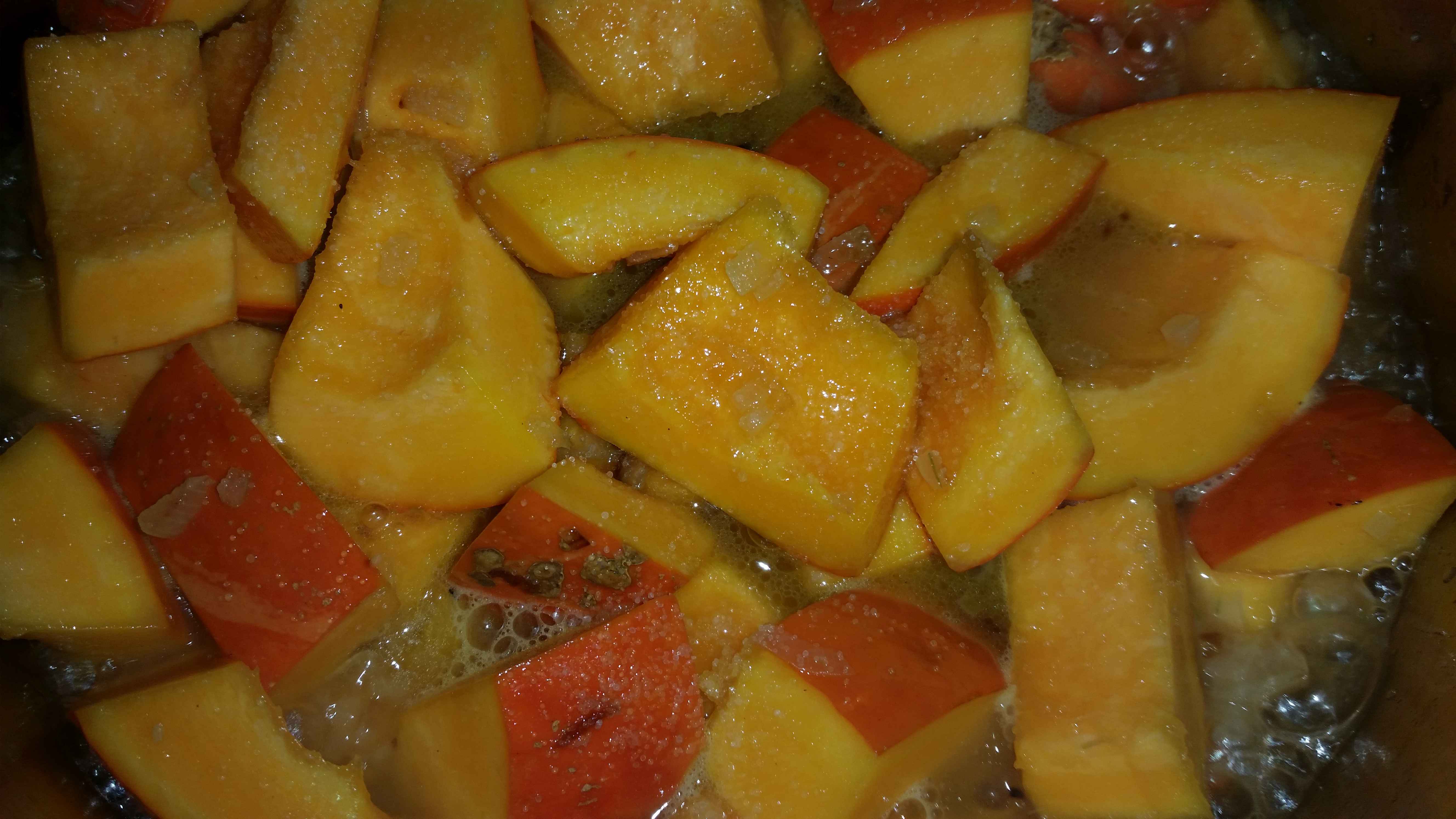 Für die Suppe werden Zwiebeln angedünstet, mit den Kürbisstücken vermischt, etwas Wasser hinzugefügt und gesalzen. Sobald der Kürbis weich ist, kann er püriert und mit frischem Ingwer verfeinert werden.