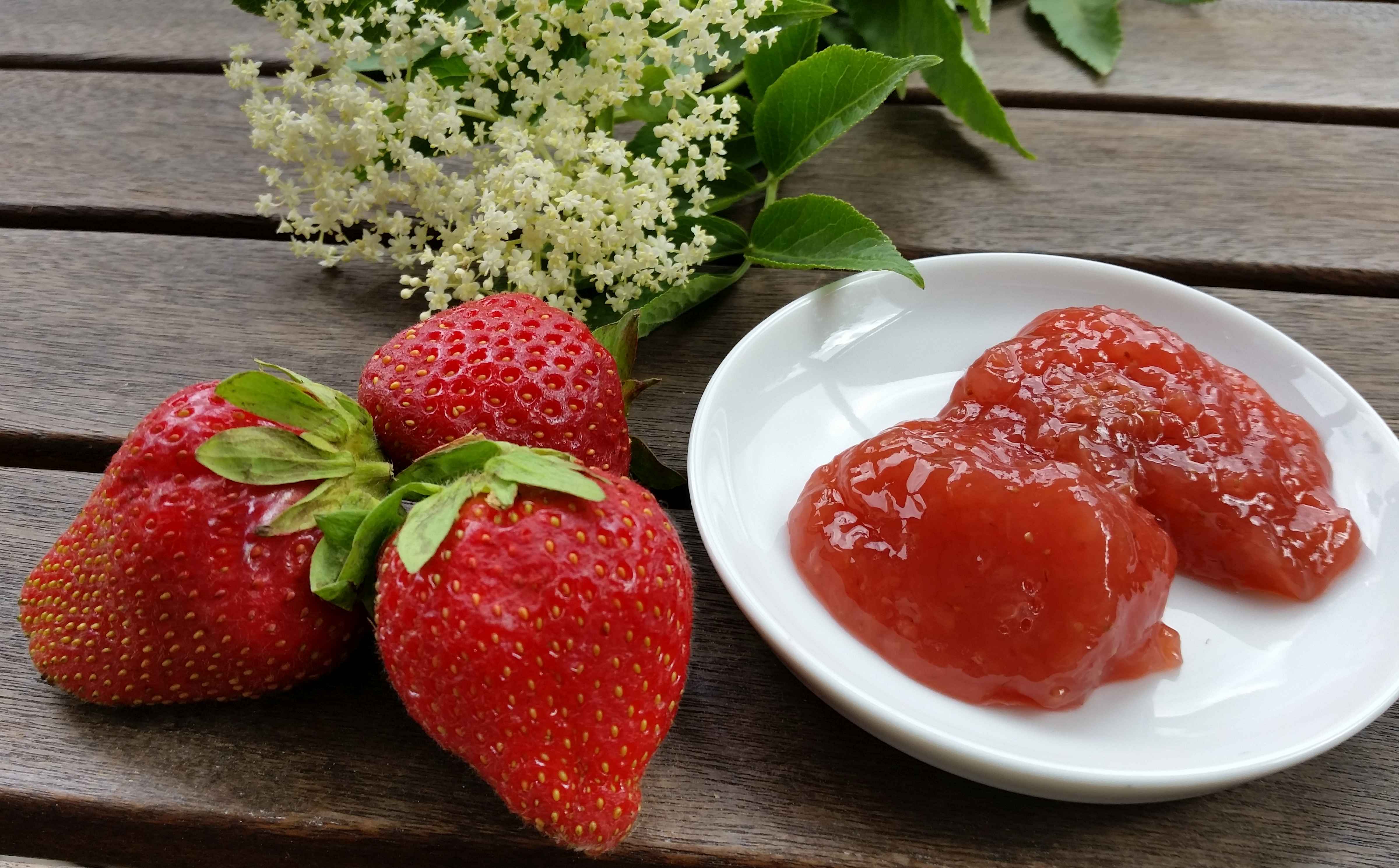 Die Kreation besteht aus Erdbeeren und Holunderblüten. Auch eine geschmacklich ganz herrliche „Verheiratung“!