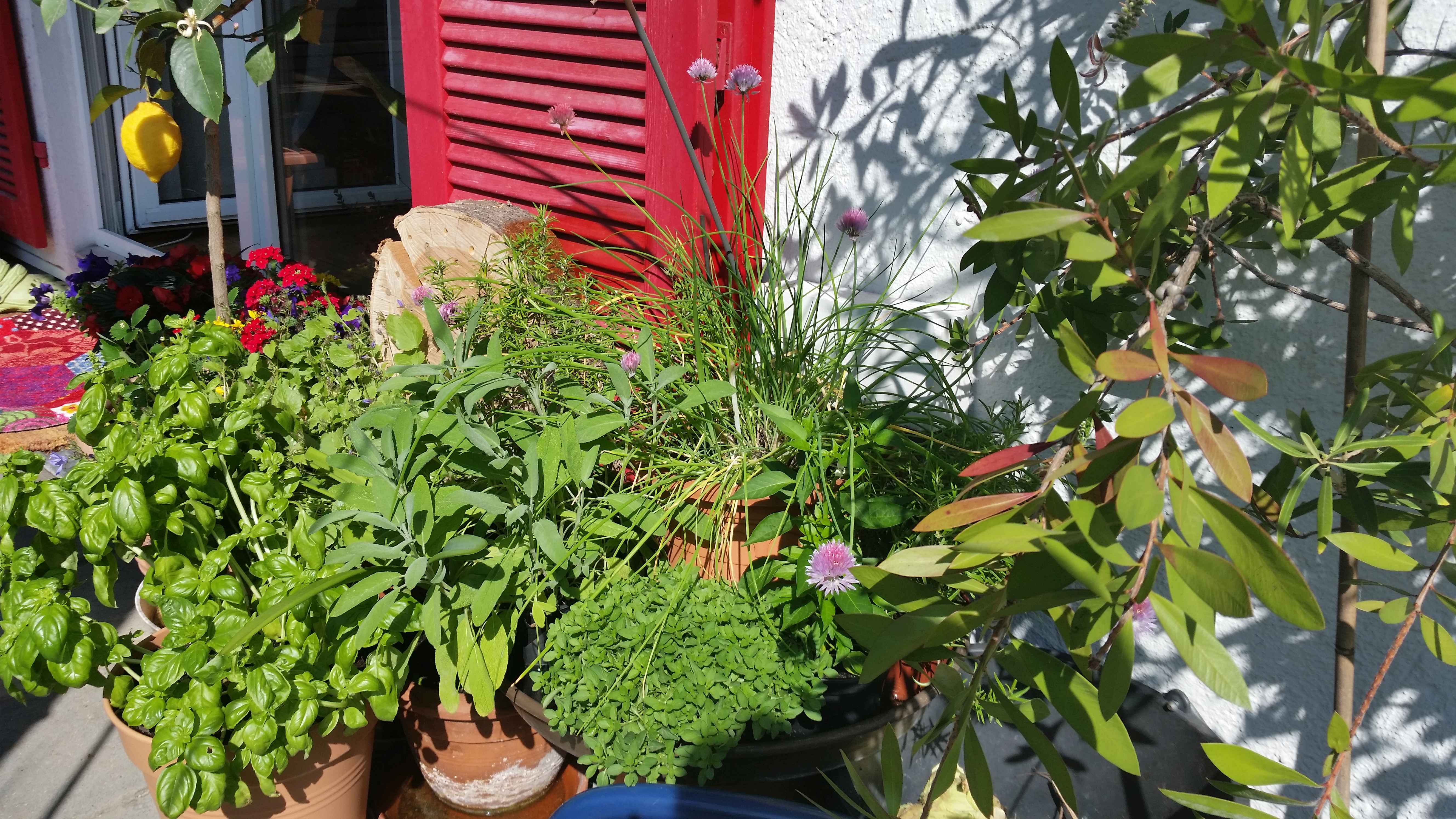 Urlaub – zuhause, in meiner kleinen Toskana. Ja, es fühlt sich wie Urlaub an, wenn ich auf meiner Terrasse sitze und all die Kräuter und Bäumchen um mich herum sehe.