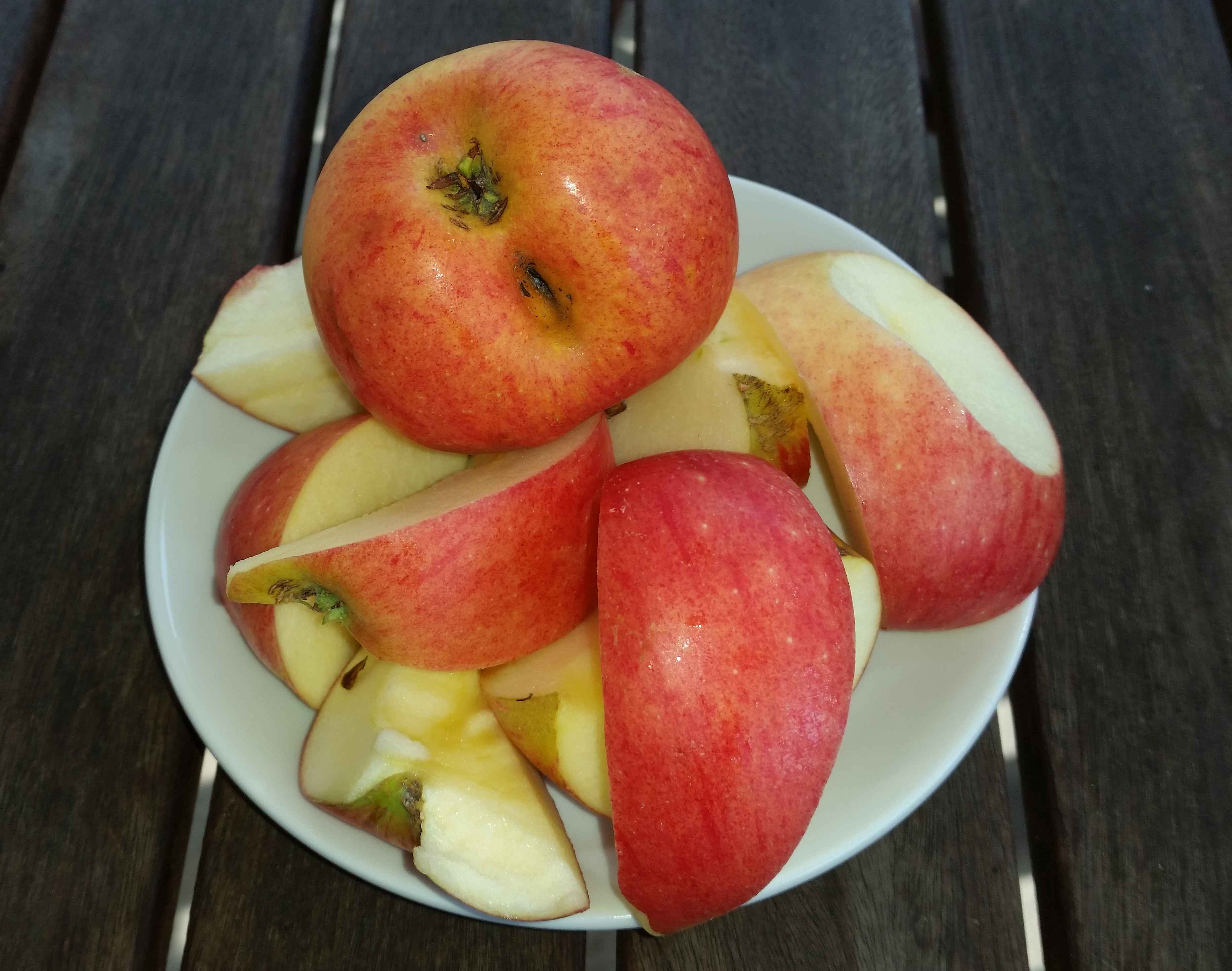 Die Äpfel des so schön blühenden Apfelbaumes schmecken gut! Ja, sie sind aromatisch, süß-säuerlich und saftig, wenn sie ganz frisch sind!