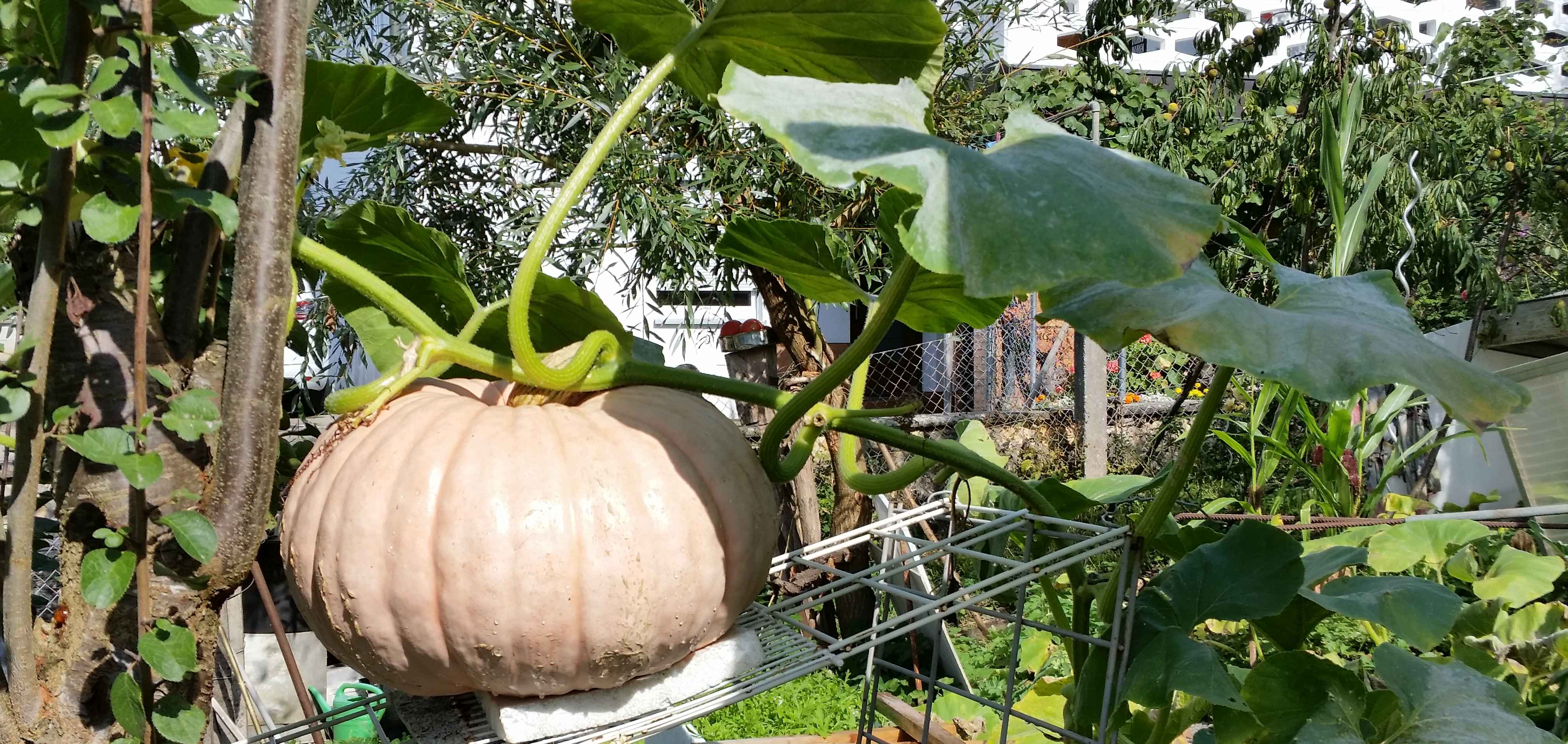 Und dann mein Nachbar! Bei ihm gedeihen so manche Pflanzen (und Tiere) – ein Anblick, der Freude macht, besonders jetzt, wo alles reift.
