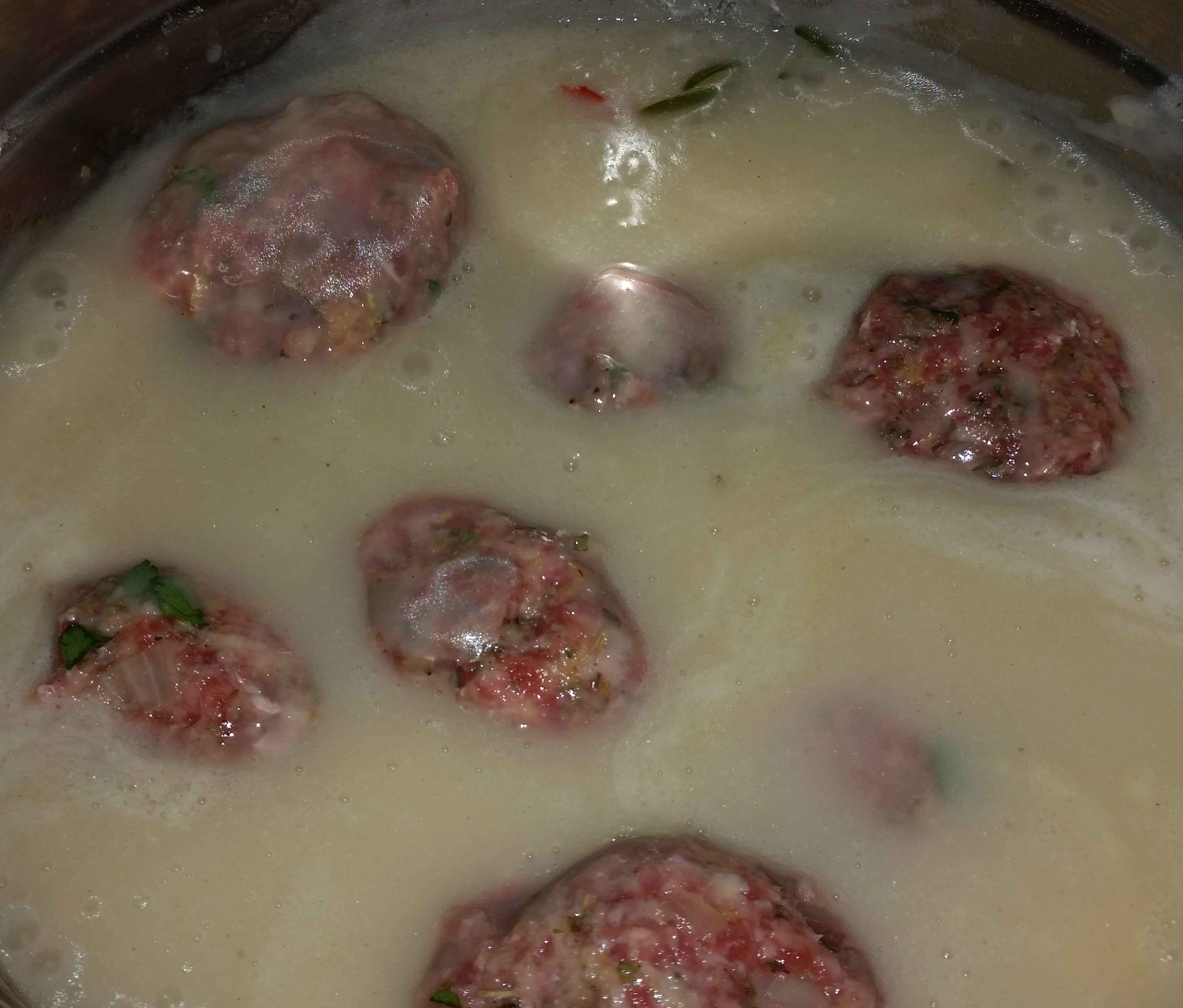 In der Zwischenzeit habe ich eine Bechamelsauce zubereitet, in der die Klopse ziehen bis sie gar sind.